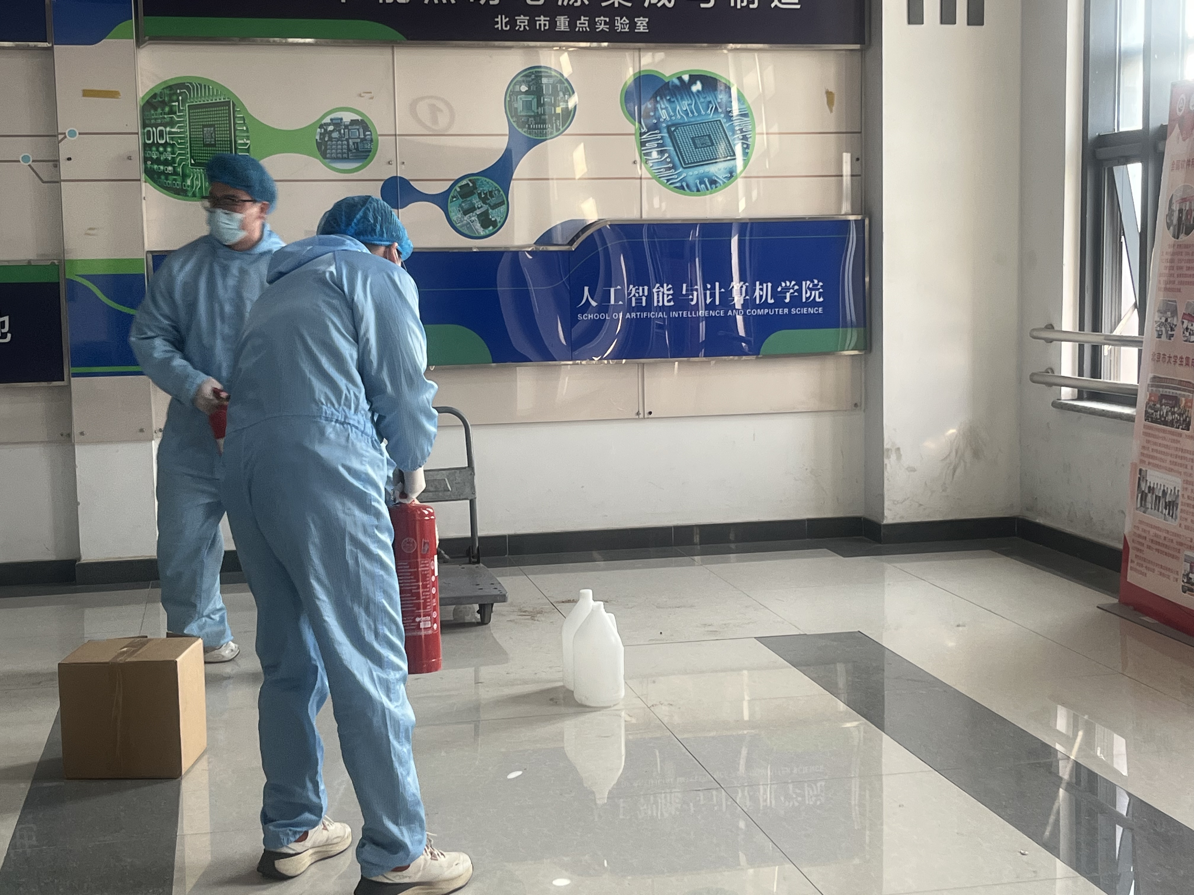 在博远楼11层大厅举办“实验室危险废物突发环境事件应急演练”。资产与实验室安全管理处和相关学院师生代表40余人参加。