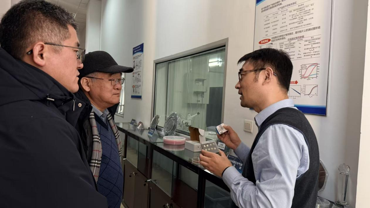 在明安杰教授的引导下,韩总一行首先参观了学院的生化传感与光电感知实验室。明教授在展示连廊详细介绍了实验室的发展历程、核心研究领域、高水平人才团队建设情况及取得的突出成就。