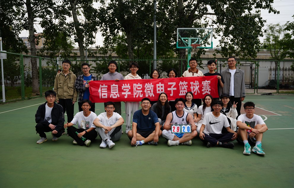南侧篮球场举办了一年一度信息学院微电子篮球赛。本次活动的目的是在学习之余丰富大家的文体活动,提高对体育活动的兴趣,团结班级凝聚力,希望通过体育锻炼可以增强同学体质,同时加强我系各年级之间的交流和相互学习。