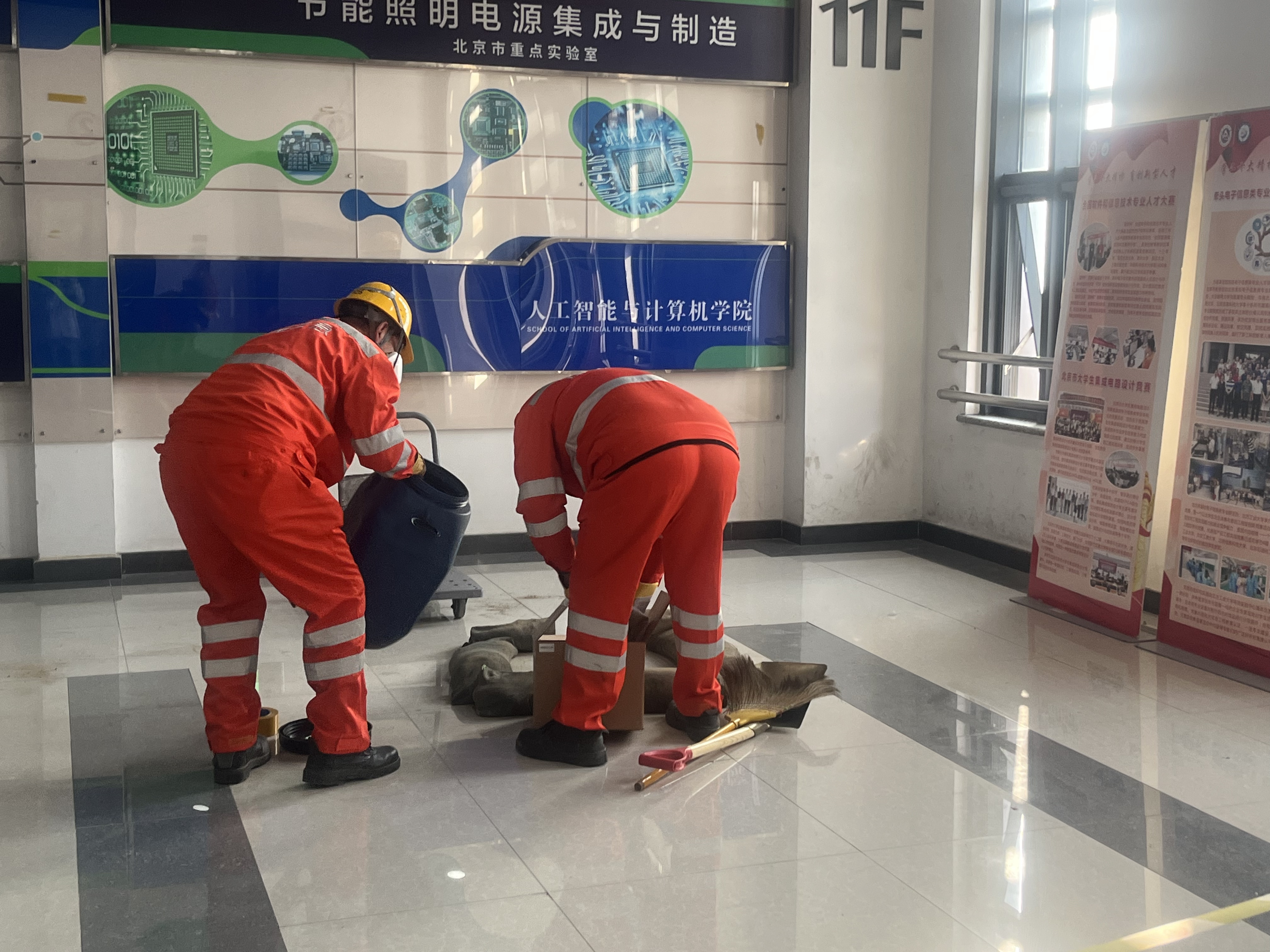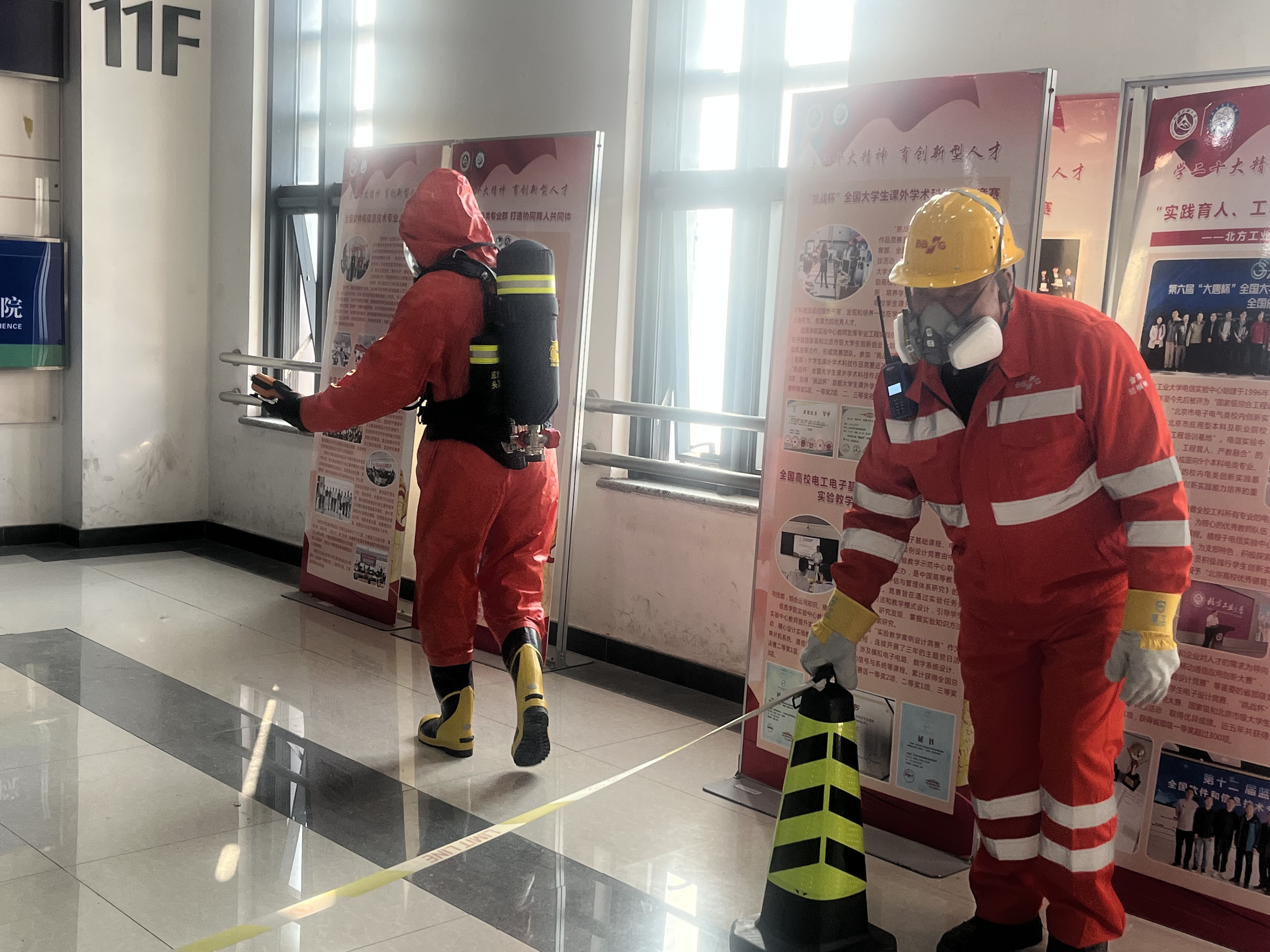 在博远楼11层大厅举办“实验室危险废物突发环境事件应急演练”。资产与实验室安全管理处和相关学院师生代表40余人参加。